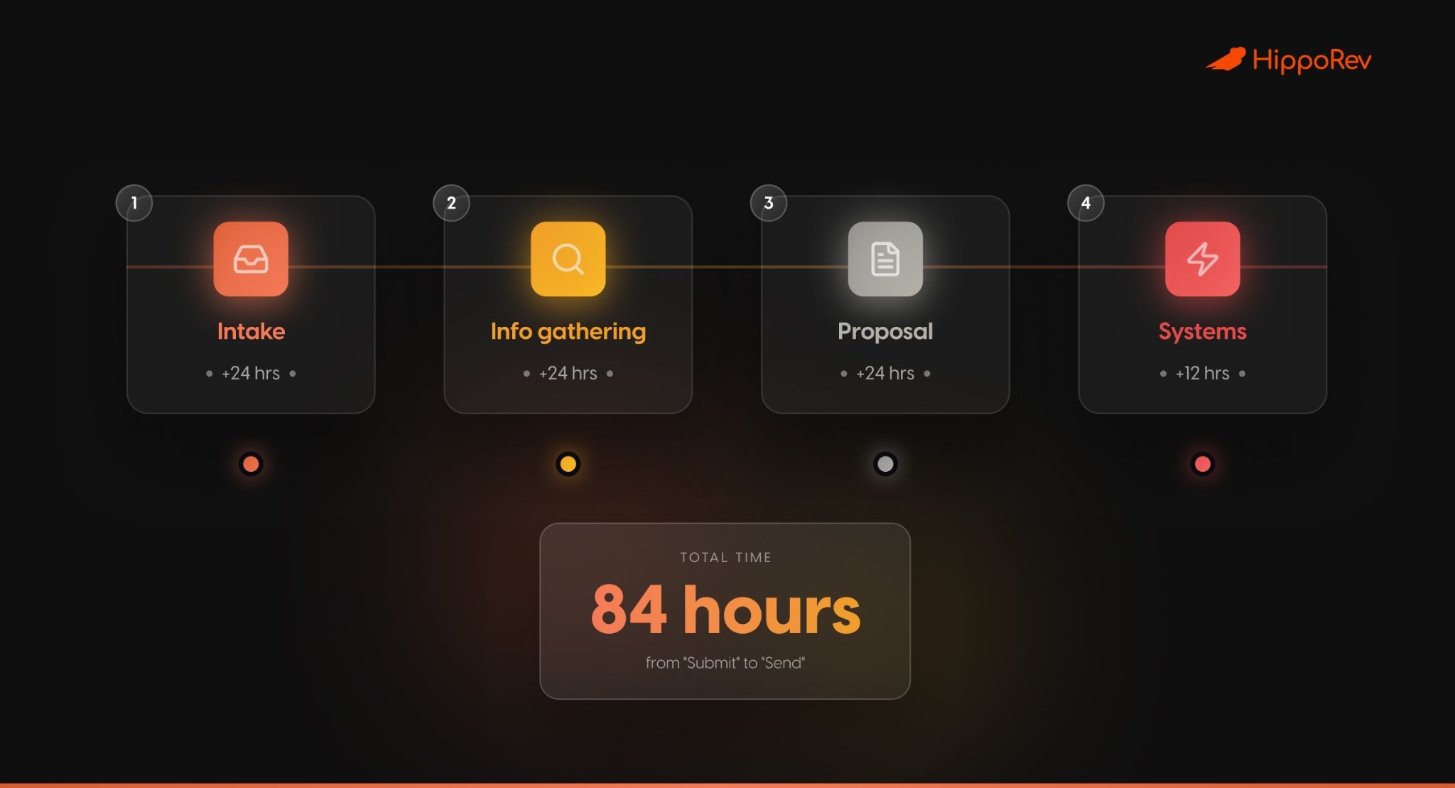 Improving response time requires redesigning the workflow rather than simply asking sales teams to work faster. This includes automated lead routing, instant pricing access, and standardized proposal generation. AI-powered systems like Hippo Rev automate these steps so responses can be generated much faster.