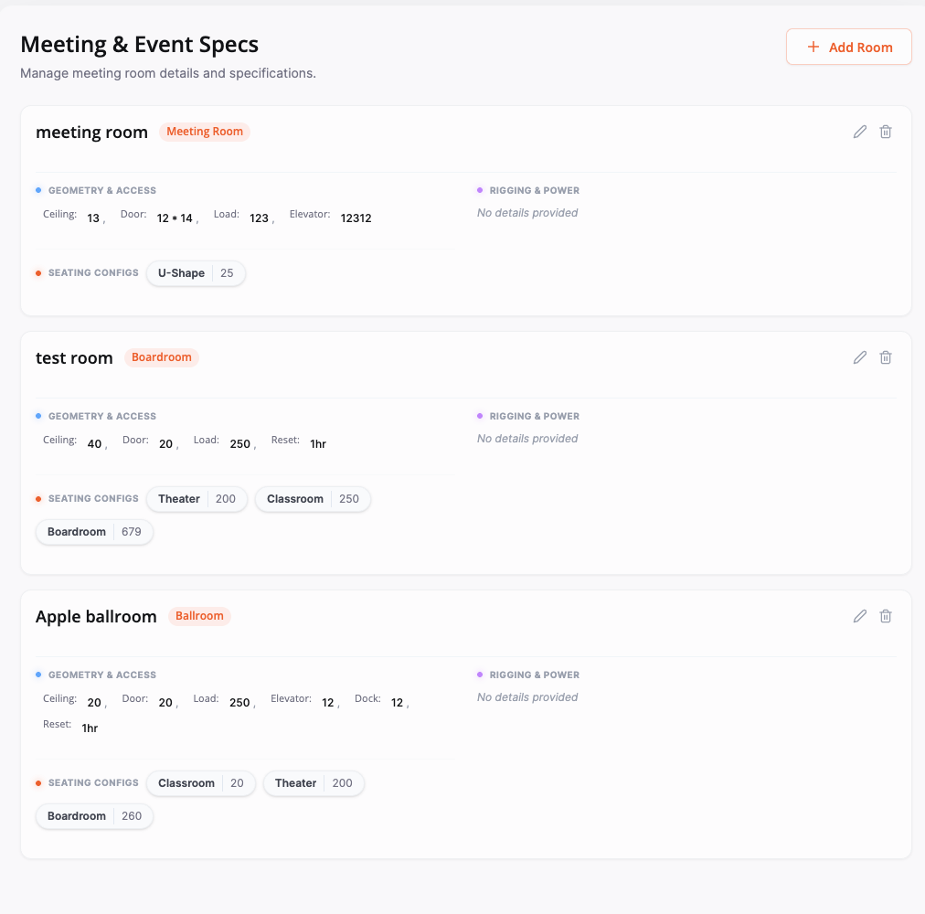 Ask a sales manager what the ceiling height is in their largest breakout room, and there's a decent chance they'll have to dig through a folder of PDFs, ping a colleague, or give a number they're not entirely sure about.